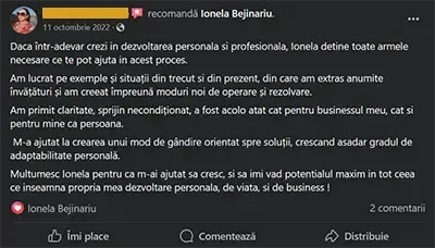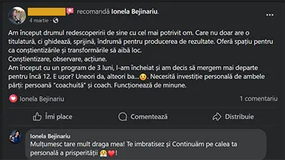 Am înlocuit credințele limitative pe care le aveam și care mă țineau pe loc cu gânduri pozitive care să mă ajute să evoluez.